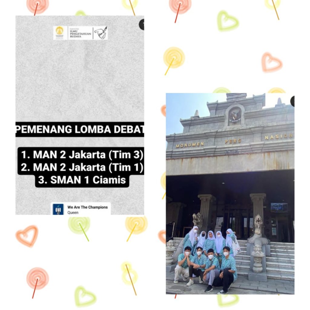 Berikut masing-masing tim debat yang berkompetisi dan mampu membawa nama MAN 2 Jakarta di ajang debat nasional :